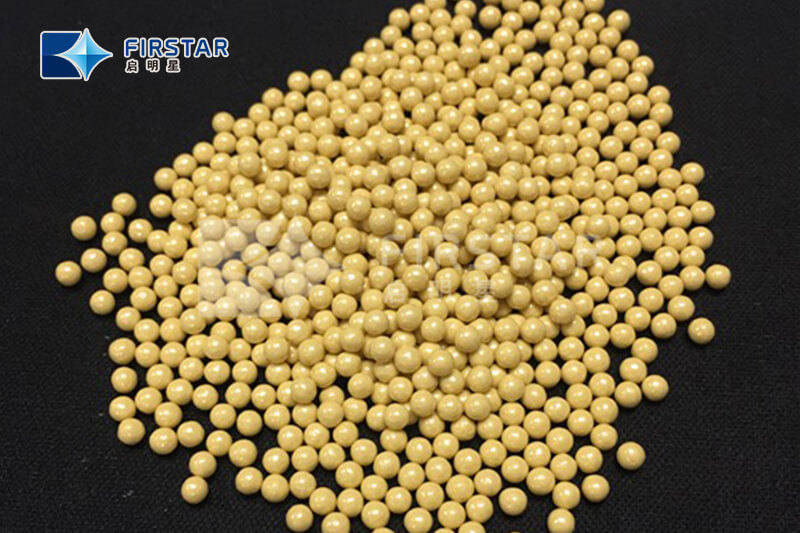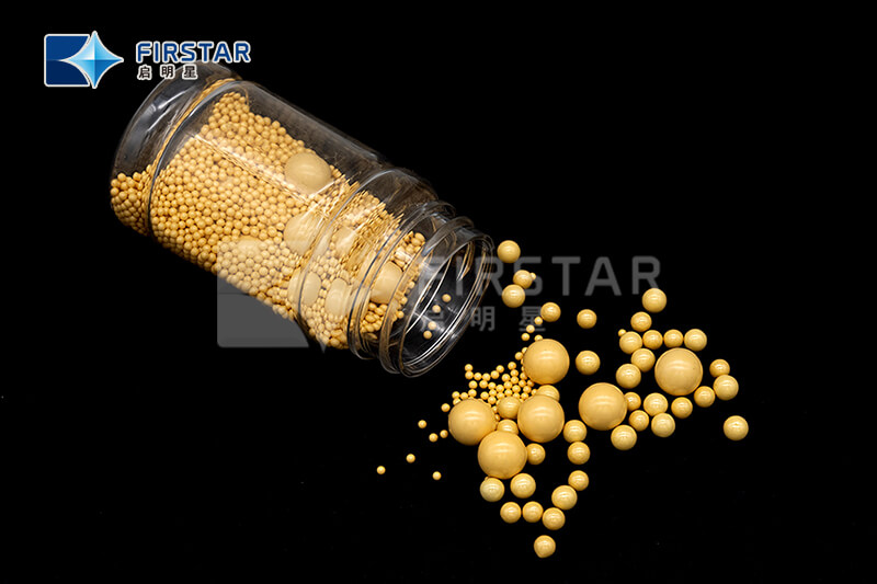 Ceria Stabilized Zirconia Grinding MediaIt is suitable for large capacity vertical mills for dispersion of CaCO3.It is suitable for high-efficiency horizontal mills.It is suitable for the production of high-viscosity paints and inks.It has high wear-resistance and a bright brown color, so there is no contamination caused by thecolor of beads. It is being used for TiO2 makers that require a true white color.It has high grinding efficiency, making it suitable for aqueous agricultural chemicals.It is suitable for the production of pigments and dyes.3.Chemical PropertyChemical Composition and Physical PropertiesCompositionZr020.8CeO30.2Bulk Density5.98~6.05g/cm3Packing Density≥ 3.90HV Hardness(GPa)≥ 11Standard Size0.4-6.0mmSphericity≥ 95Packing25Kgs4.Standard DimensionØ0.4-6.0mm5. PackageDifferent package as to meet different customer’s requirements.Wooden Crates Drum Plastic Pallet Bulk Packing Plastic Bucket