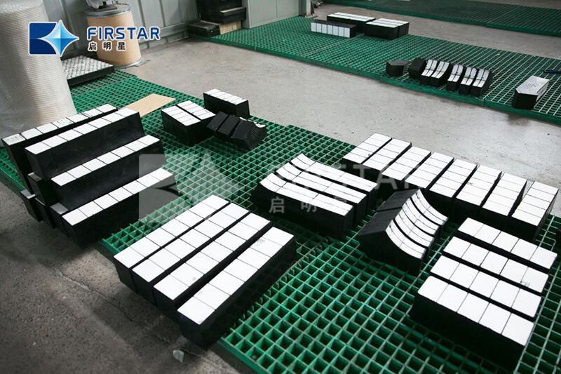 QMX will design and engineer ‘fit-for-purpose’ wear liner to achieve service longevity, predictable wear rates and liner layouts to suit the asset and application. Ceramic rubber wear liner is made from rubber or polyurethane, alumina ceramic tiles, and steel backing plate through the hot vulcanizing process. it is applied for bins, hoppers, chutes, etc Type of Ceramics:– High quality 92%, 95%, 99% alumina ceramic tiles, ZTA Tiles, RBSIC Silicon Carbide Tiles– 3-10mm steel backing plate (studded)– Durable Rubber protective coating– Superior bond strength (>6MPa)– Available in all shapes and sizesFeaturesBenefitsTwelve times more durable than Steel (proven by trials)Reduces cost of Annual Maintenance and Wear protection materialEnhanced service life at critical operating conditionsReduces shut down frequency, hence production costVarying shapes and thickness ceramicAppropriate selection possible to meet varying duty conditionsPredictable wear patternReduces production downtimeApplication: Product variants are selected based on the duty condition and the surface chosen for lining. This type of liners can be installed in chutes, launders, bins, feeders etc. where low to medium degree of impact resistance and very high degree of abrasion resistance is needed.Product ConstructionCeramic cylinder floating in rubber matrix with steel backing for tougher applications with larger material flow which contain some coarser material.Ceramic tiles of varying shapes and thickness with rubber and steel backing, ceramic wear plates have large and very hard ceramic locking tiles vulcanized into a matrix of wear resistant rubber.Ceramic tiles of varying thickness with rubber backing square ceramic tiles make it possible to bend the sheeting which makes it the perfect protection for both concave and convex surfaces.Ceramic tiles floating in rubber matrix with steel backing easy to fit to existing conveyors and will reduce material spillage giving longer belt and component life.