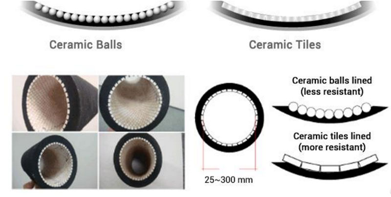 Внутренняя резина состоит из композита керамических шариков (диаметр ø3 до ø10) или шестиугольных керамических плиток и связующей резины с сильным сцеплением.